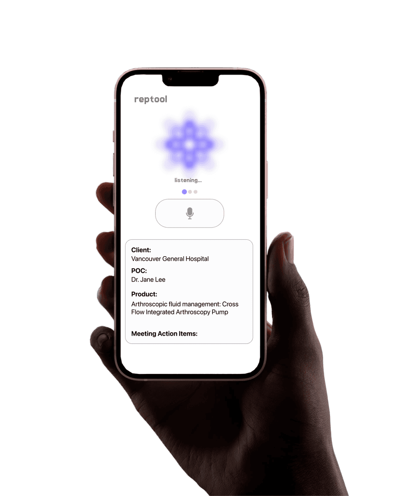 Reptool will listen to you while you are jumping between sales meetings via the mobile app.